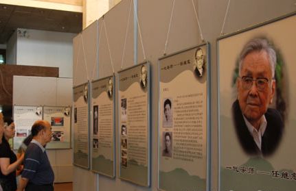 任老的灵堂设在国图南区的学术报告厅里,顺着国图大门的白底黑字的指示牌一路走,就可以到达。一组印有任老各个时期的照片和生平介绍文字的展板,挂在国家图书馆一楼大厅进门处临时竖立的侧墙上,吊唁人群从图书馆正门到达灵堂的必经通道两侧,使之成为一条“追思之路”。