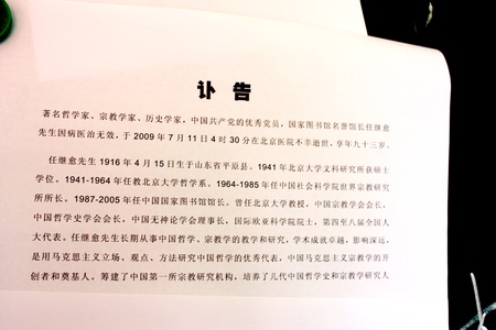 北京大学党办校办14日在各系所张贴“季羡林先生讣告”。(龙泉之声 摄)