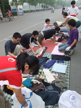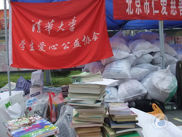 “仁爱之歌”不停顿的播放着,很多路过的同学也被吸引过来。有男生问是否也可以分享绿豆汤,更多的同学注意到这里原来是清华大学学生爱心公益协会组织的捐衣现场。一个身着蓝色时尚裙装的女生很惊喜的问:“你们这里可以捐衣服吗?旧衣服也可以吗?太好了!真是太好了!”