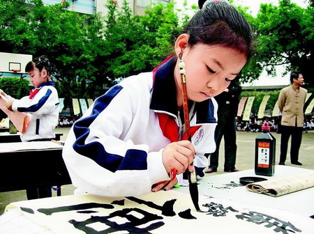 当前由于网络的发达,使得学生应用QQ或BBS与人交流的机会增多,他们运用电脑打字的速度并不比手写慢。而且由于电脑打字易于修改的特点,更是符合老师强调书面整洁的要求,所以许多学生都很乐意用这种方式取代手写,很少练习写字。而更为现实的是,由于书法教育没有进入人才选拔机制。因此在课余时间,许多“现实”的家长更愿意把自己的孩子送到英语、数学之类的辅导班,或与艺术院校考试相关的音乐、绘画、舞蹈、表演类培训班,课外的书法培训则被遗忘。