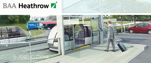 希思罗机场2008年已在航站楼和机场停车场间配备了18辆豆荚车,用来载客或托运行李。这些车长3.7米、宽1.4米、高1.8米,时速是40公里。