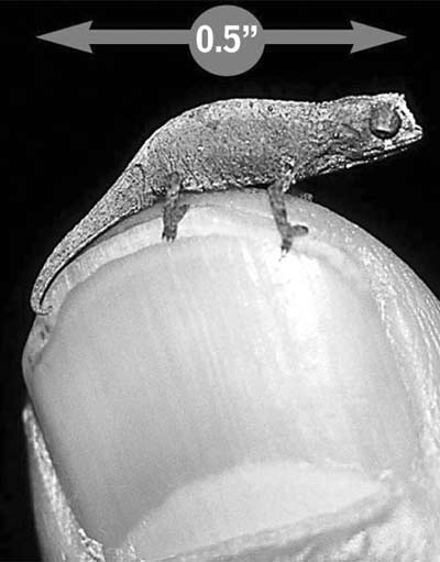 世界上已知的个头最小的蜥蜴——“侏儒壁虎”,身长只有1.52厘米,而且还是把尾巴算在内的情况下。这种濒于灭绝的动物生活在多米尼加共和国的贾拉古拉国家公园以及伊斯帕尼奥拉南部海岸的比塔岛。