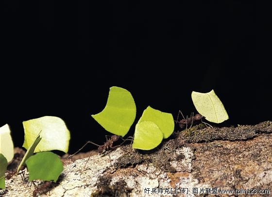 过了不大一会儿,这只小个子蚂蚁又出现在窗台上,这次不只它一个——在它后边跟来了几十只同伴,像队伍行军一样整整齐齐地跨过纱窗,登上我的书桌,直奔面包屑。它们走得气喘吁吁,但步伐仍然显得矫健有力。一到目的地,领队的小蚂蚁又围住面包屑巡视了一遍,其它的蚂蚁立即散开,发疯般扑向各自选定的目标。有的一个独擎一粒,虽然压得腿直打颤,眼睛都差点爆出来了,仍然咬紧牙关狠命地往回拖;有几只蚂蚁同时围住一个大颗粒,各自紧紧地抓住一端,死推硬拉。