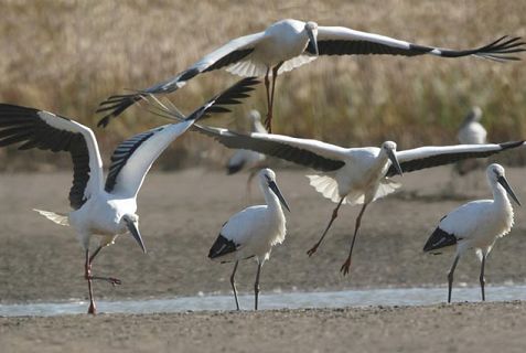 1998年12月,北京顺义潮白河畔飞来了11只大鸟,个个1米多高,长长的脖子,黑色长而宽大的嘴,细长而暗红的腿,浑身洁白而翅膀大部分呈黑色。它们在浅水中觅食,在朔风中战栗。经专家鉴定,它们是国家一类保护鸟类,被列入《世界自然保护联盟红皮书》和《中国濒危动物红皮书》的大型涉禽——东方白鹳。