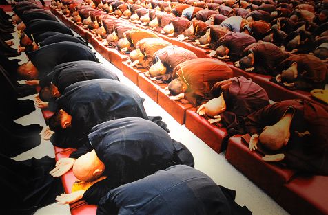 “清净人间·佛教摄影特展”收录的是中国佛教汉传、藏传、南传三大语系优秀摄影作品150余幅,分成吉祥如意、扎西德勒、南无斯德三个单元。摄影特展以“崇高与宁静——和谐中的发展”为主题,涵盖广泛,立意深远。南传佛教中斋僧的壮观场面、汉传佛教中礼佛的撼人场面、藏传佛教中辩经的宏大场面,让人仿佛身临其境,真切感受佛教生活的神圣与庄严。