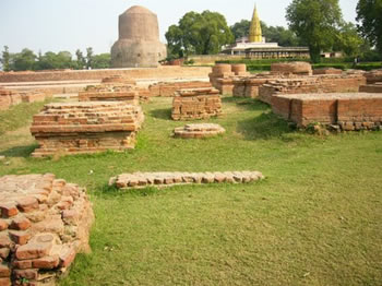 我去的地方是印度的佛教遗址——鹿野苑(Sarnath,Deer Park),这里是古印度佛教四大圣地之一,它位于印度北方邦贝拿勒斯西北不到10千米的地方。