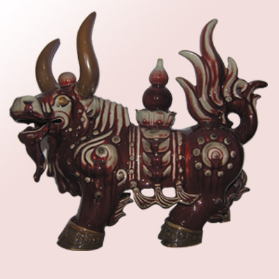 该品一改牛的旧有形象,以“神采飞扬、文采飞扬”的儒雅、凌虚步实而来;它祝福贺寿、送平安、送金银、寄吉祥,五福临门;它以扶摇之上的双角和有凤来仪的牛尾表示凤扬九天、青云直上;以四足分饰乳钉表示认定方向、追求卓越、永不凋竭;整体设计雄强、夸张而又灵动、飞扬,是中华牛中最为典型形式之一。在“玉龙杯”百牛风采中国钧瓷大赛中获唯一金奖。