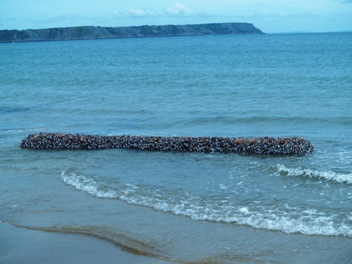 度假游客丽贝卡?波特以为自己看见了“一只活生生的大海怪”。她说:“它有两米长,像电线杆子那么粗”,“事实上它们可能是我见过的最大型的飘浮的狗爪螺(又称茗荷儿,鹅颈形藤壶)标本”。经专家验证后,这个所谓的异星怪物原来是不计其数的狗爪螺。它们原本生活在海洋深处,受坏天气影响从海里翻涌出来,并密密麻麻地附着在一块木头上随波逐流,最终到达海滩,才成了这副模样。