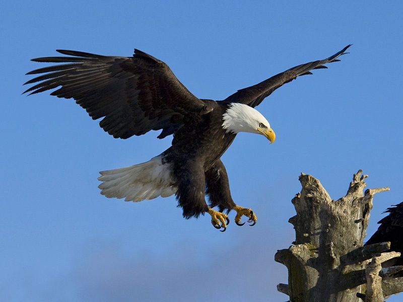 雌鹰守护儿子,雄鹰出去捕捉猎物。时而,它会折下一段枯枝带回新巢,尽管那枯枝的重量超过它的体重,但它舒展双翼,划过山谷,动作优美,令人叹绝;有时它还会抛下树枝,一拢双翼,然后迅速跌下,在半空中抓起树枝旋向远处,这杂技般的艺术叫人感叹不已。
