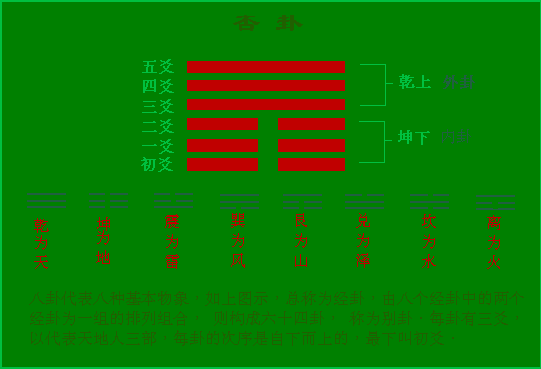 什么叫“生生”?《周易》上讲“天地之大德曰生”,意谓天地最大的品德就是“生”。《周易》各卦产生的过程就体现了“生”的品格。《说卦》上讲,“乾,天也,故称为父;坤,地也,故称为母。”父母交感变化就化生了震、坎、艮、巺、离、兑,三男三女,他们与乾、坤两卦合起来便形成了八卦,八卦的不断重叠产生六十四卦,这个过程就是生生不息的过程。这种思想就影响了整个中国的思维方式。