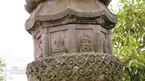 廖站长介绍,整座石塔高约9.5米,基座为2.2米,为11层楼阁八角石塔,每层都由整块石头雕刻而成,塔体分地宫、塔座、塔身、塔檐、塔刹五大部分。该塔为舍利塔,地宫在基座下,是珍藏佛舍利等物所在。塔座为八角菱形须弥座,仰式云纹覆盆上为仿木结构重檐八角亭,每面设莲台佛龛,内坐佛一尊,共八面坐佛。