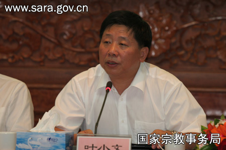 2009年9月11日,国家宗教事务局召开干部大会,中组部副部长李建华在会上宣布了党中央、国务院的决定:任命王作安同志为国家宗教事务局局长、党组书记,免去叶小文同志国家宗教事务局局长、党组书记职务,根据工作需要,叶小文同志调任中央社会主义学院第一副院长、党组书记(正部长级)。
