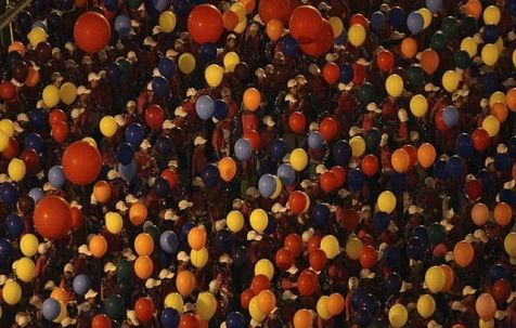 礼炮声中,国旗班的战士从人民英雄纪念碑的后边走出来,他们整齐划一的步伐是共和国的象征和骄傲。国旗升起来,全场起立,共唱国歌,气吞山河。