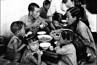 家乡有这样的顺口溜,“低指标,瓜菜代,吃得饱,饿得快,肿了大腿,肿脑袋”,“南瓜北瓜,天天吃它,无油少盐,稀稀呱呱”。在那个物质严重缺 乏的时代,“那时候就一个感觉:饿!”“你知道吗?那时买东西光有钱还不行,还要票,什么布票、粮票、油票……”这个时代的符号很相似:推开不同的门,每 张餐桌上的菜肴是相似的;每个房间家具摆设是相似的;人们的穿戴是相似的;对生活的渴望也是相似的。他们的理想很简单:吃得像个人样。