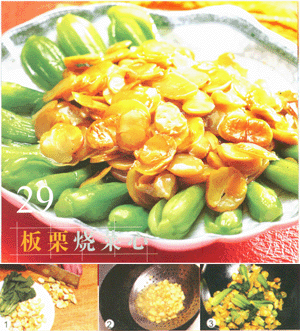 提示:板栗可补肾强筋。两种食物同用,可按秋时补肺,亦为冬季补肾做好准备。