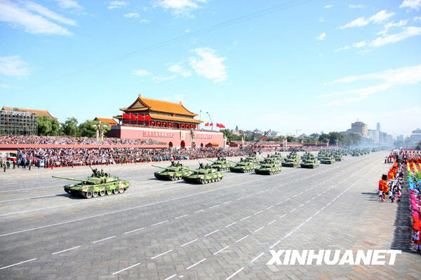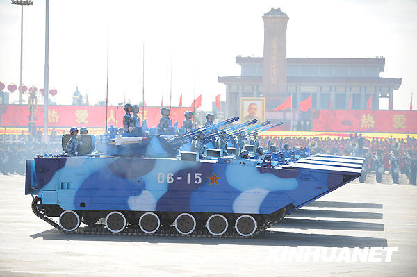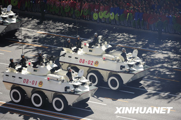 10月1日,首都各界庆祝中华人民共和国成立60周年大会在北京举行。这是陆战队战车方队接受检阅。新华社记者李尕摄