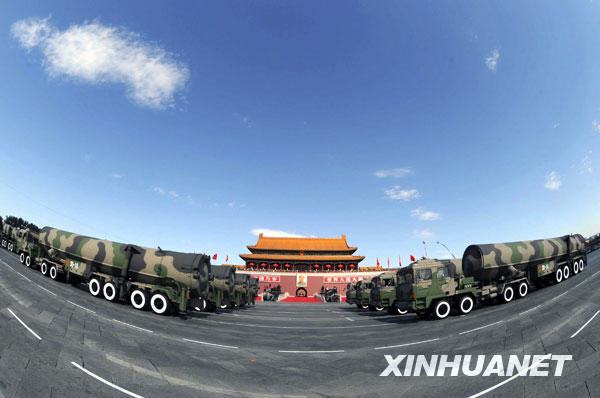10月1日,首都各界庆祝中华人民共和国成立60周年大会在北京举行。这是陆基巡航导弹方队接受检阅。新华社记者李尕摄