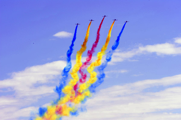 谁持彩练当空舞?当我国第一代女战斗机飞行员驾驶教-8飞机拉着彩烟飞过,整个北京的天空都显得异彩纷呈。