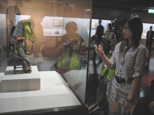 在清朝泥塑彩绘雍正像(北京故宫藏)前,台湾观众饶有兴致地观赏