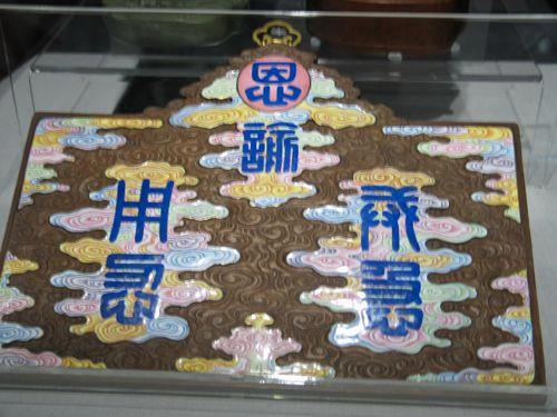 清雍正木雕嵌珐琅片“戒急用忍”挂屏。台北故宫博物院藏。