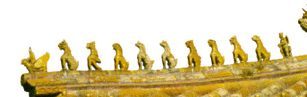 中国古建筑的檐角垂脊或戗脊上排列着的小动物叫走兽,它们起保护瓦钉钉帽的作用,后来被赋予了装饰和等级的意味。清代(公元1636 - 公元1911)规定,走兽的多寡与建筑规模和等级有关,中国建筑中只有皇帝举办典礼的太和殿用满了十枚走兽(不计仙人),其他建筑必须少于此数。