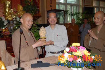 潘:香港佛教历史悠久,六百万常住居民中有近六分之一信仰佛教。自觉光大师担任香港佛教联合会会长以来,佛教又有长足发展,特别是四月初八日释迦牟尼佛诞辰通过立法成为香港公众假日,使佛教更加深入人心,觉光大师功不可没。现在觉光大师高瞻远瞩,为香港佛教培养未来的接班人,创办香港佛教僧伽学院,这又是一项创举,一项续佛慧命、灯传有人的大事,对面向二十一世纪,培养新生代僧伽具有健康的理念,弘法利生的时代使命感,透过现代人的法治、组织、制度观念,并配合高新科技与社会通识来提升当代僧伽教育的学术层面,使僧伽教育在香港得到完善,这是功德无量、泽及后世的大事好事。香港佛教僧伽学院在觉光大师领导下,人才辈出之日,将是香港佛教繁荣发展,正法久住之时。我衷心祝愿香港佛教僧伽学院培育僧才,多出僧才,住持三宝,弘传正法,利益众生,同成佛道。