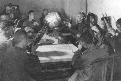 其实东仓鼓乐社与所有的鼓乐社一样曾经面临着生存的困境。“我出生在西安东仓门,我从小就看老人们演奏鼓乐。”旅美画家范炳南这样谈起他和西安鼓乐的缘分。“东仓鼓乐社由皇家粮仓‘敬禄仓'所供养,每年长安城内的鼓乐活动是六月初一礼佛、朝山进庙,七月初大型庙会,长安城内外庆祝收获国泰民安。庙会七日彭乐社互送请贴斗乐(或嬉乐)演奏。记得那是西安的每条街道好像都有自己的鼓乐社,那时人们的一个主要娱乐活动就使摆弄鼓乐。”范炳南对儿时的美好回忆念念难忘。