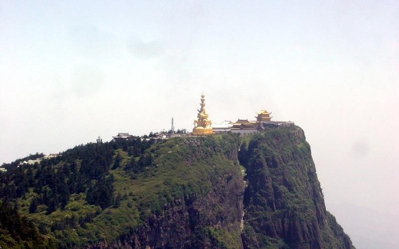 峨眉山位于四川盆地西南缘。有山峰相对如蛾眉,故名。包括大峨眉、二峨眉、三峨眉、四峨眉。主峰3079.3米,高出成都平原2,500∼2,600公尺。为褶皱断块山地,断裂处河谷深切。一线天、舍身崖等绝壁高达700∼850公尺。山势雄伟,隘谷深幽,飞瀑如帘,云海翻涌,林木葱茏,有「峨眉天下秀」之称。山上多佛教寺庙,向为著名游览地。