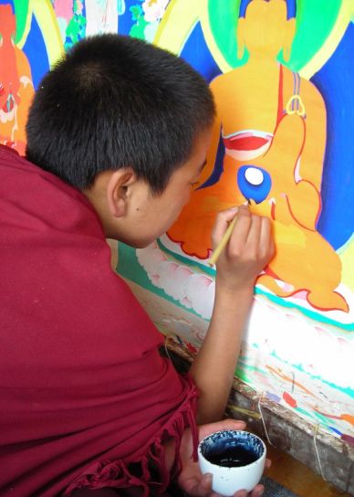 经过几个世纪的风风雨雨,很多早期、中期优秀的绘塑作品已不复存在,但现在仍能零星地在隆务寺、年都乎寺、吾屯寺院里见到早、中期匠师们留下的气势宏伟的巨幅壁画和技术精湛的唐卡。