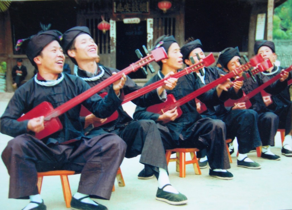 在侗族的所有乐器中演唱大歌时最主要的伴奏乐器是琵琶、牛腿琴,两者一起为大歌伴奏时,在齐奏为主的基础上即兴加花或加强节奏而产生和声效果,乐师们在演奏中使乐器发出的这种和声效果给歌手们提供了和声美的直感,促进了歌手们审美意识的形成。在歌手中有的歌手自弹(牛腿琴)自唱,唱的调子和弹的调子不一样,弹的调子是为唱的作铺垫,打和声,但两种调子却是非常的和谐。这些都驱使驱使大歌这种复调歌曲的诞生,反过来这种复调歌曲的发展又促进了二弦琴、琵琶等乐器演奏的不断发展,由此不难看出,民族乐器与民族声东在艺术上有极为密切的关系,它们之间必然要相互影响,相互渗透,相互促进,相得益彰向前发展。