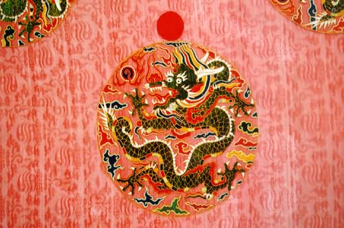 我国封建社会的宫廷建筑群中,有的特别庄严,如朝见、祭祀等用的大殿;有的特别雅致,如供帝王读书、憩息的书斋;有的特别豪华,如歌舞、饮宴用的厅堂;有的特别绮丽,如供帝王后妃居住生活的寝宫、暖房。在这些特定环境中,云锦就必须与周围的环境相协调、相衬托才行。因此,这特定的使用对象和特定的使用环境,不仅决定了云锦图案的纹样内容及其表现形式,同时也决定了云锦配色的基本主调。