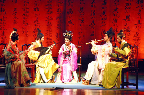 (4)宋代“南戏”五大名剧:《荆钗记》、《白兔记》、《拜月记》、《杀狗记》和《琵琶记》,南曲也演唱这些剧目。