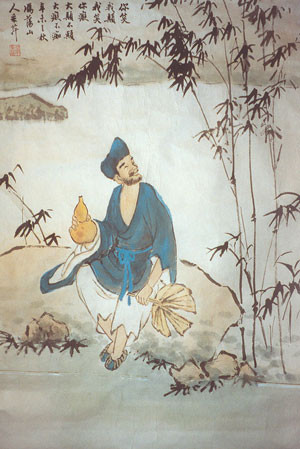 道济天性好动,不喜念经,难耐打坐,经常和那些顽童斯混在一起,作呼洞猿、斗蟋蟀的游戏。甚至蘸大蒜吃狗肉,僧众告到方丈室,慧远却说:“佛门之大,岂不容一颠僧!”于是他又被人们称作“颠僧”。慧远圆寂,他失去庇护人,被迫转到净慈寺,先是替人念经兼作火化工,后来升了书记僧,却依然出入歌楼酒肆,游山逛水。他写诗自述:“削发披缁已有年,唯同诗酒是因缘。坐看弥勒空中戏,日向毗卢顶上眠。撒手须能欺十圣,低头端不让三贤。茫茫宇宙无人识,只道颠僧绕市廛。”活脱脱的一幅“游戏人间”的自画像。从外表看,这位号称“湖隐”、“方圆叟”的穷和尚,破帽破扇破鞋垢衲衣,似丐似氓,非僧非道,实际上却是禅宗杨岐派第六世得道高僧。他学识渊博,擅诗善文,出语谐谑,往往超诣。台湾著名学者南怀瑾对他的四首《西湖》绝句和临终偈语尤其赞赏,说“若以诗境而论诗格,他与宋代四大家的范成大、陆放翁相较,并无逊色”; 如以禅学的境界论诗,则已臻禅境之极诣。略举其一:“出岸桃花红 锦英,夹堤杨柳绿丝轻,遥看白鹭窥鱼处,冲破平湖一点青。”画面 色彩鲜明,动静谐合;情趣内蕴,用笔精细而又不失自然。末句尤有神韵。他每有疏状新出,临安城更是争相哄传,名闻遐迩。