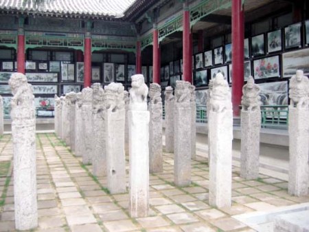 进入博物馆,首先映入眼帘的是孔庙旧址,其建置可以追溯到北宋末年。保存至今的照壁、牌坊、泮池、棂星门、华表、戟门、碑亭、两庑等多为明清的建筑,并遵循着孔庙固有的建筑格局,组成了一个绿树掩映、古朴典雅的庭院式建筑群。陈列于小殿两侧的唐景云钟、大夏石马都是国宝级的艺术精品。前者铸于唐睿宗景云二年,已有1200多年历史。其音质纯美,钟声清晰宏亮,钟上还铸有唐睿宗李旦亲自撰文并书写的铭文一段,是李旦鲜有的传世字迹中的佳作。后者大夏石马,是十六国时代匈奴族铁弗部建立的大夏国的作品,他继承了我国汉代时刻艺术雄浑深沉,体魄巨大、生动传神的特点,代表了那个时代的艺术观念和艺术水平,同时也是一件极为罕见的珍贵民族文物。
