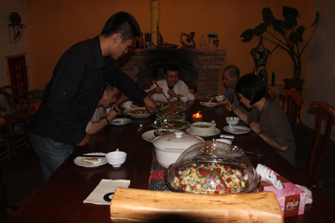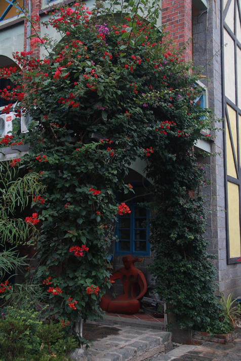 吴先生在每个平房的房顶上种植了爬藤植物,那植物垂掉下来,落在门口,形成一个天然的帘子,而他们,将“帘子”往两旁轻挽,看了不免让人绝叹!晚餐也是让人难以忘怀的,每个素菜里都用各种香草做调料,天然清新,感慨这方是人吃的食物!亦想起德国思想家海德格尔“诗意地,人栖居在大地上……”的诗句,只是现代的人,离“诗意地栖居与生活”已很远……