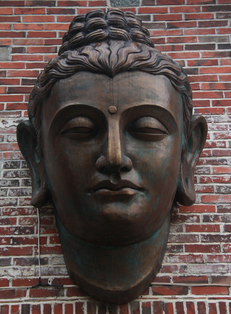 2006年,马来西亚寂静禅林开印法师与泉平法师找我做一个比较南传味道的佛像,他们给我讲《沙门果经》:比丘修行的过程、福报,是佛陀的晚年经典。因此我将佛陀设计成现衰老相的人间佛陀,青铜材质,07年安装。他们觉得很独特,很满意。因为《阿含经》和南传《大藏经》相应部经典有记载佛陀是光头的,而且有示现衰老相,《增一阿含经》也有写。