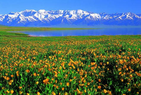 从沙漠中走出五天后,他们经行一个方圆约有二百里的大湖,雪峰环绕,倒影如画,邱处机为之心醉神迷,美其名曰“天池”,这就是今新疆境内的赛里木湖。他们沿湖南下,一路经过阿里马城(遗址在今新疆西部霍城县境内)、大石林牙城(即虎思耳朵,今吉尔吉斯共和国伏龙芝)、塔剌思城(今哈萨克共和国江布尔城)、赛蓝城(在今哈萨克共和国南部奇姆肯特城东