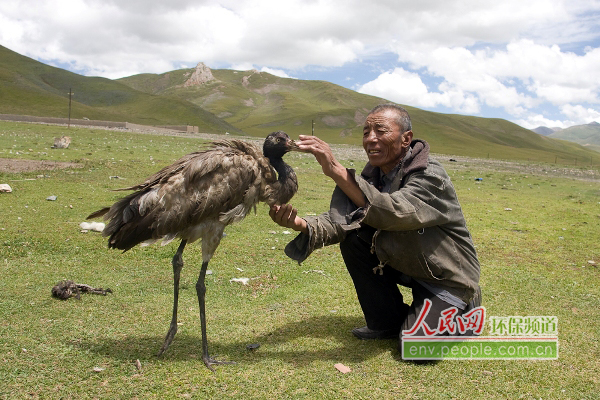 在采访中,记者试图靠近这两只黑颈鹤,但它们似乎对生人还心存戒备,总保持10米左右的安全距离,而加洛老人走上前去时,它们就像孩子一样冲上前去。