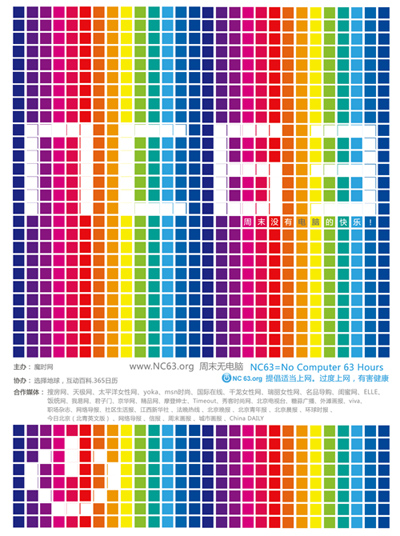 2009年11月的最后一个周末,由魔时网联合选择地球、互动百科、365日历等数十家机构和网站发起的“NC63——周末无电脑”活动将正式启动。