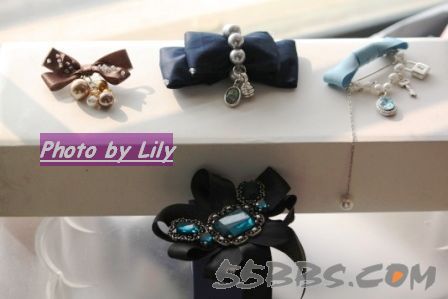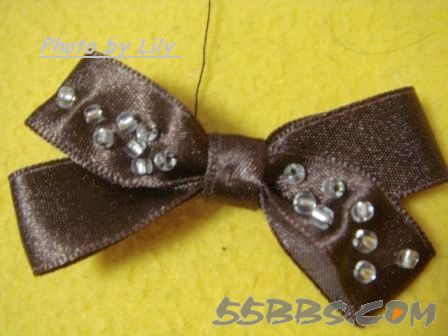 试了几种方案,都又被我否定了重来,最后还是以最简洁的方式还原蝴蝶结本身的美丽吧,大家看到那几颗小水晶珠了吗?
