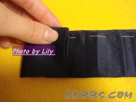 这张图是开始还没缝制的时候,比划长短时拍的,两端长度至少要遮住大别针本身,顺便看看这几层是不是够挺括?