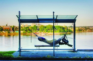 等车等久了,双腿有点麻木了,脑袋自然就会迸出一个念头——有张吊床让我睡一下,好好歇歇就好了。加拿大温哥华的一个公交站内,就提供这样的“贵宾”服务。