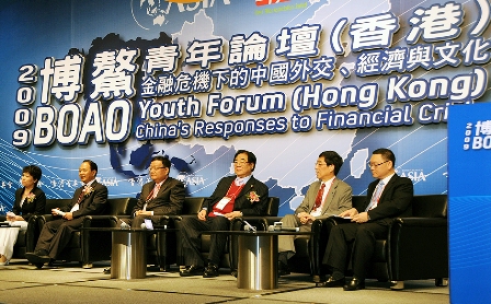 博鳌亚洲论坛及香港菁英会12月7日在香港会展中心联合举办“2009博鳌青年论坛”。论坛邀请了来自外交、经济和文化等领域的十余位主讲嘉宾,从青年人的视角阐释、探讨金融危机下中国政府在相关领域的政策制定和实施,以及未来的趋势和发展。