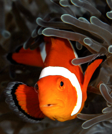 由于不断上升的水温导致珊瑚大面积白化——珊瑚失去共生藻类并最终走向死亡——小丑鱼的生存面临威胁。更少的活珊瑚意味着更少的海葵,小丑鱼的藏身之处也随之减少。除此之外,大气中不断上升的二氧化碳水平致使海水酸度提高,导致小丑鱼用于返回保护性海葵所在地的化学信号受到阻隔。