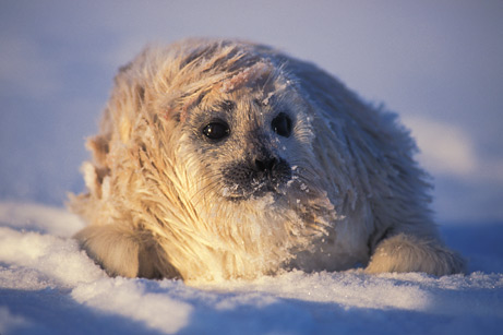 这张照片摄于加拿大努勒维特地区,展示了在雪地上休息的一只斑纹海豹幼仔。与北极熊一样,斑纹海豹也依靠北极的夏季海冰才能生存下来。没有人知道,如果北极夏季海冰因为全球气候变暖彻底消失,斑纹海豹以及其它动物将会发生什么。专家们表示,到2040年,夏季的北极可能就要成为一个无冰的世界。