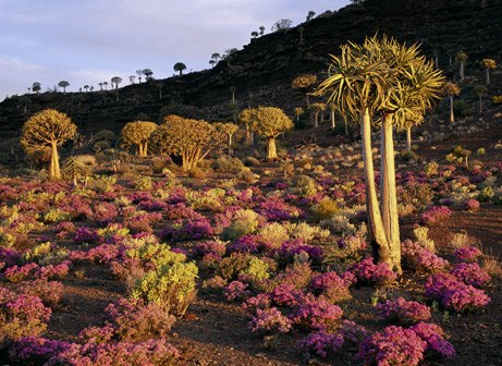 照片摄于南非,展示了科克布姆树(也被称之为“箭树”)及其周围粉红色的花。这种沙漠植物高度最高可达到32英尺(约合10米),名字来源于纳马跨兰的本土San猎人,他们将树枝砍下来制成箭,箭头上还要涂上毒药。