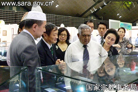 12月21日,新加坡总统纳丹在中国驻新大使张小康、中国国家宗教事务局外事司司长郭伟陪同下,参观了“中国——新加坡2009宗教文化展”。