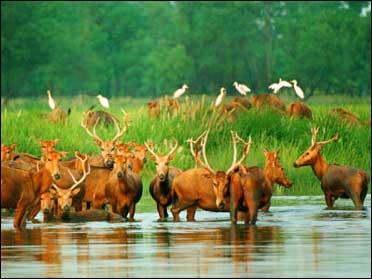 现在全球范围内,麋鹿的数量也只有几千头,不过,据史料记载,商周时麋鹿在中国相当多,中原到处都是,数量有上亿头。然自周朝开始,人类大肆猎捕滥杀和气候变化致使麋鹿走向灭绝。