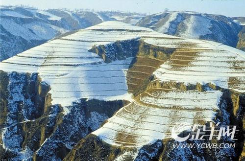 我这次也是逆流而上。在陕北高原行走时,黄河要不成了白河——都结了冰了,人可以在上面南来北往而不用坐船,要不就还是那副旧模样——浊浪滔滔。所以当车子一进入龙湾村的山口时,我惊呆了:山下的黄河竟是碧绿碧绿的,河边是雪白雪白的。与河中间碧绿的流水形成鲜明对比的是,河边裹着银白的线条,那是没有融化的白冰,恰像是为黄河钉上了一副边框。偶尔河面上还有一些小岛沙洲什么的,更像是一个洁白的水晶球漂浮在蓝色幕墙般的平面上。