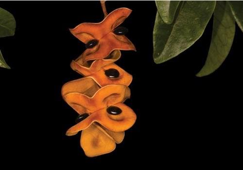 在澳大利亚雨林地区生长着一种猴耳环树,之所以这样命名是由于它们长着装饰性的悬挂种子。这种树的果实张开着,展现出明亮橙色的内部,其中包含着黑色的种子,这种对照明显的色彩关系使得鸟类很容易误认为这种树为它们准备好一顿美餐,但实际上这是一场骗局。